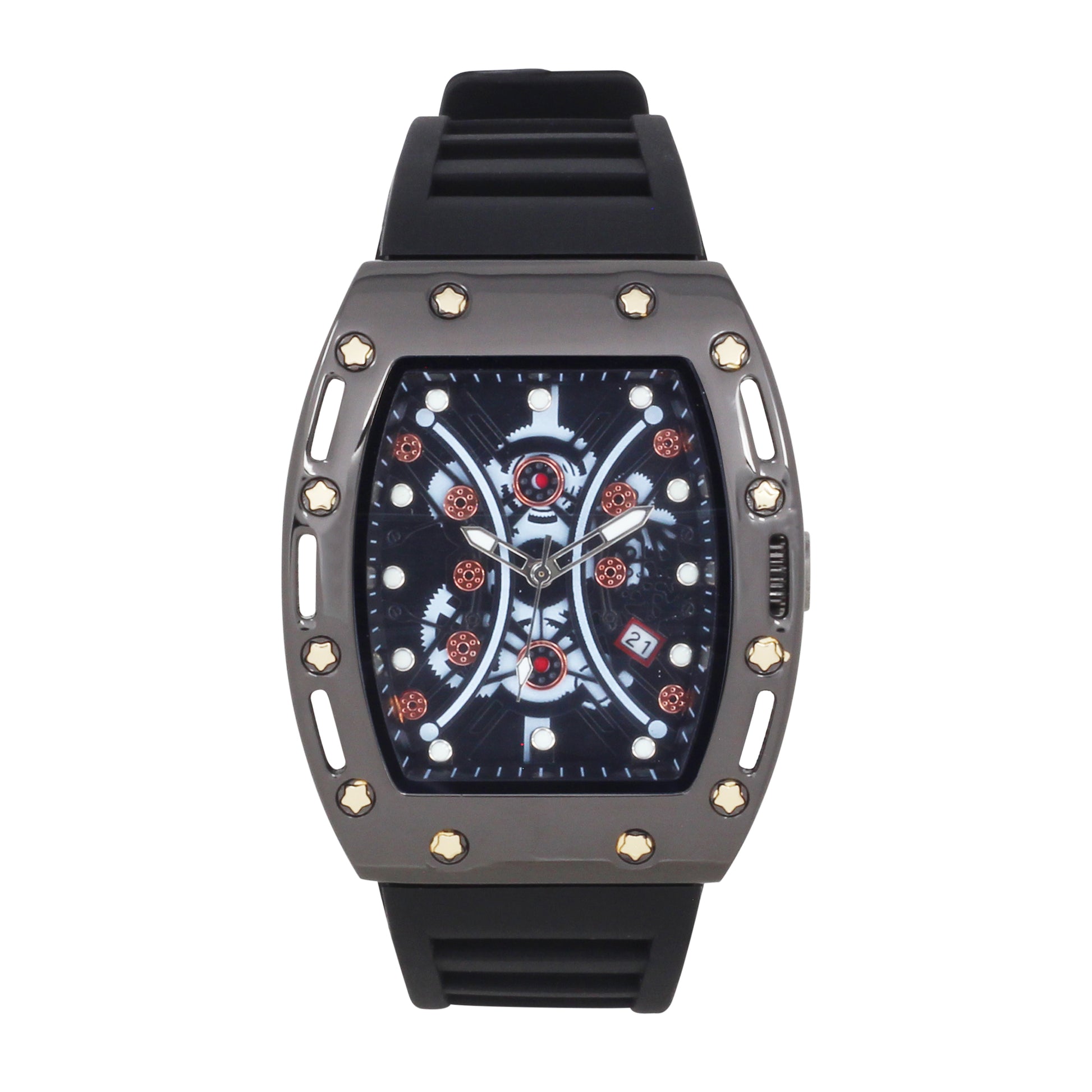 Men's Luxury Watch: Special tonneau-style watch with a large masculine size. This watch is unique due to its intricately sculpted dial and Silicon band.